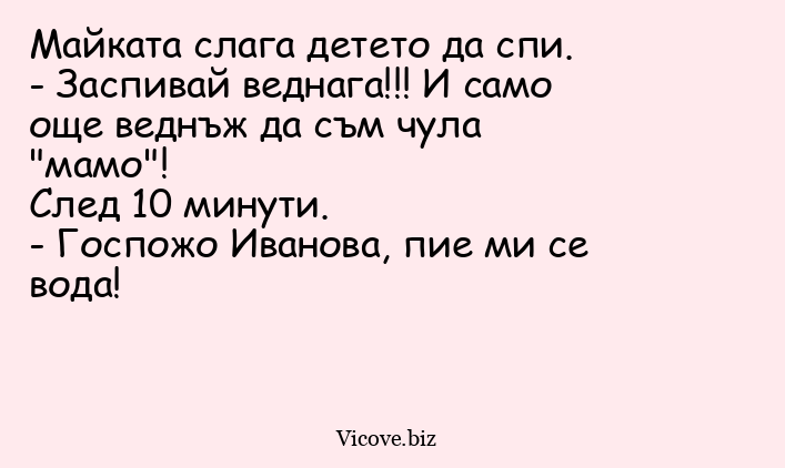 - Заспивай веднага!!! И само още веднъж да съм чула "мамо"!