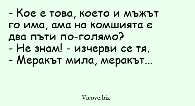 - Кое е това, което и мъжът го има, ама на комшията е два пъти по-голямо?