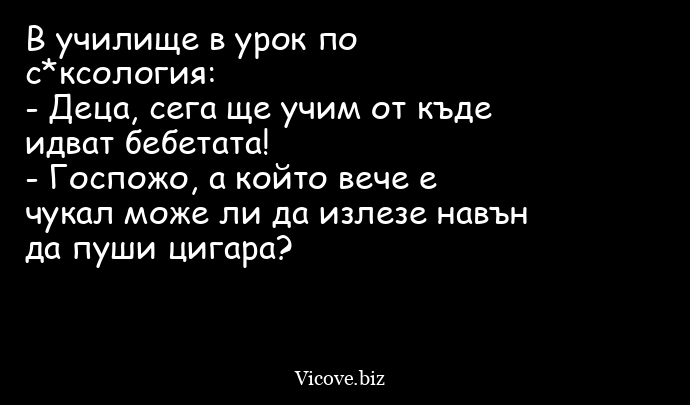 - Госпожо, а който вече е чукал може ли да излезе навън да пуши цигара?