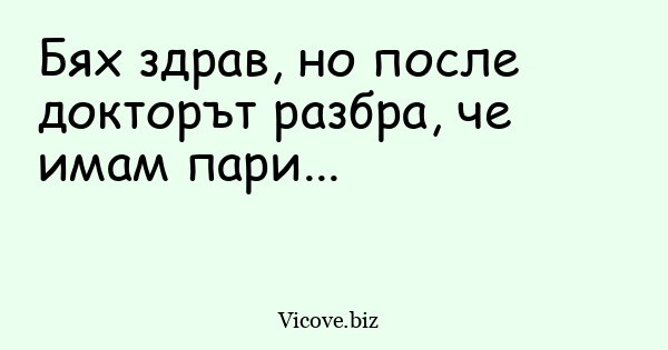 - Изпий си лекарството, и ще ти стане по-добре, вярвай, аз съм специалист.