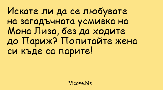 Искате ли да се любувате на загадъчната усмивка на Мона Лиза, без да ходите до Париж? Попитайте жена си къде са парите!