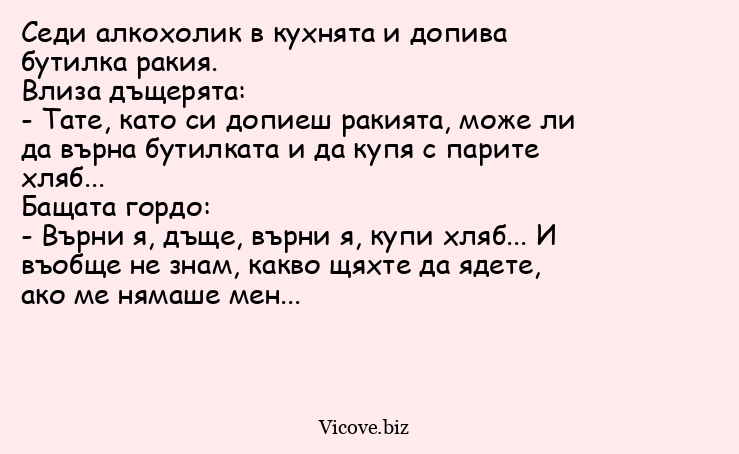 - Тате, като си допиеш ракията, може ли да върна бутилката и да купя с парите хляб...