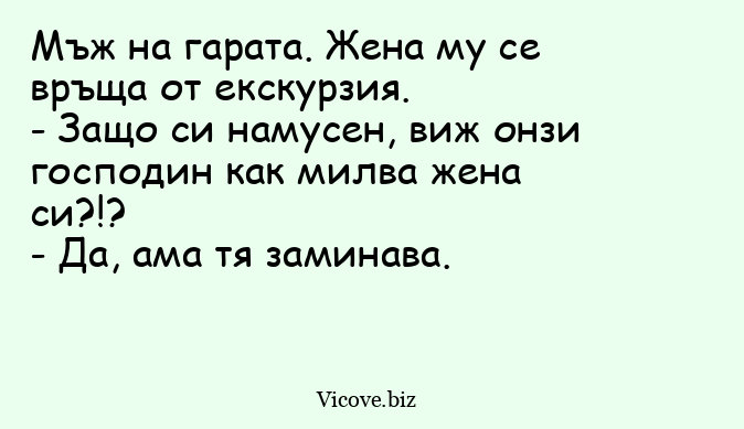 Муж се връща ненадейно от командировка и още от вратата на спалнята крещи: