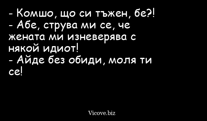 Комшо, що си тъжен, бе?! - Абе...