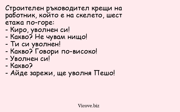 Строителен ръководител крещи на работник, който е на скелето, шест етажа по-горе: