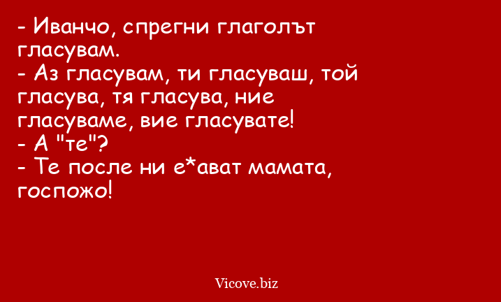- Иванчо, спрегни глаголът гласувам.
