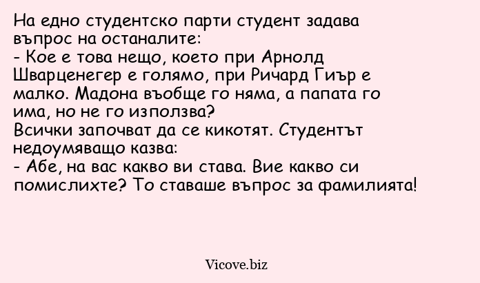 На едно студентско парти студент задава въпрос на останалите: