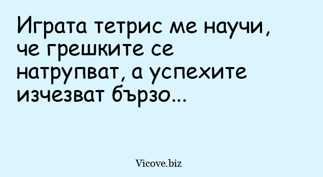 Играта тетрис ме научи, че грешките се натрупват, а успехите изчезват бързо...