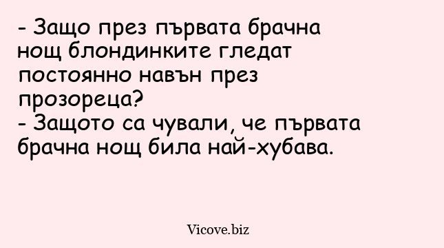 - Защо през първата брачна нощ блондинките гледат постоянно навън през прозореца?