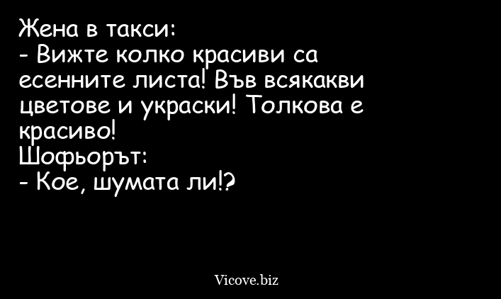 Минава едно такси, шофьорът маха през прозореца и вика: