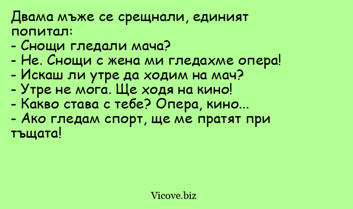 - Ако гледам спорт, ще ме пратят при тъщата!