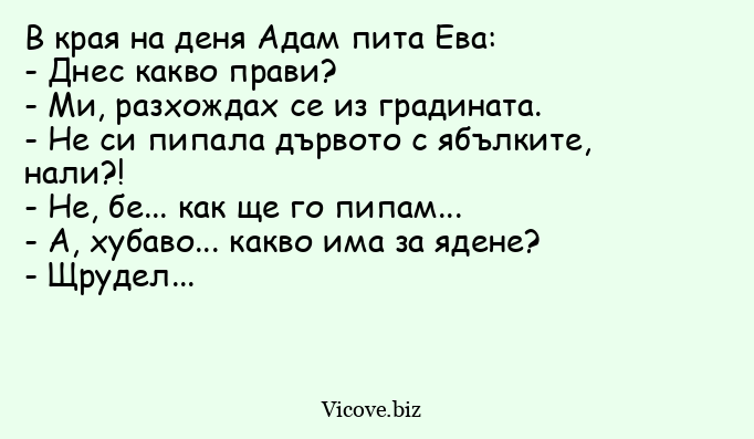 В края на деня Адам пита Ева...