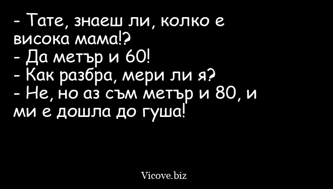 - Не, но аз съм метър и 80, и ми е дошла до гуша!