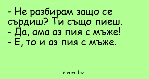 - Не разбирам защо се сърдиш? Ти също пиеш.