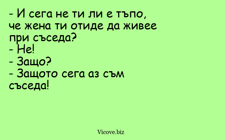 - И сега не ти ли е тъпо, че жена ти отиде да живее при съседа?