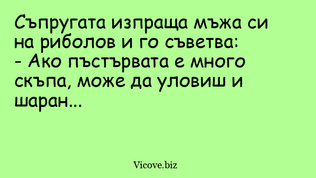 Съпругата изпраща мъжа си на риболов и го съветва: