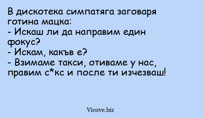 - Взимаме такси, отиваме у нас, правим с*кс и после ти изчезваш!
