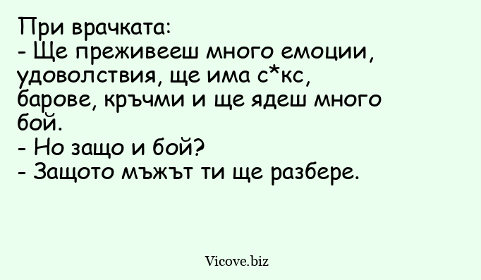 - Ще преживееш много емоции, удоволствия, ще има с*кс, барове, кръчми и ще ядеш много бой.