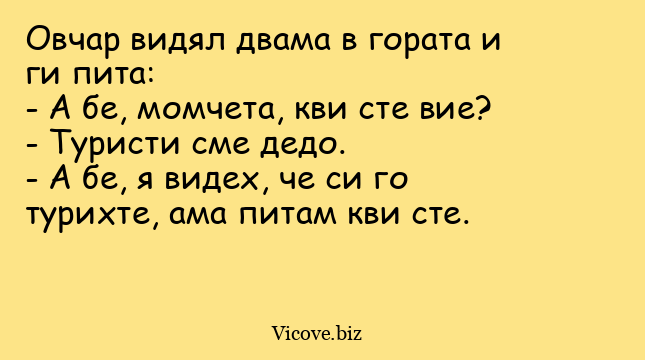 Овчар видял двама в гората и ги пита: