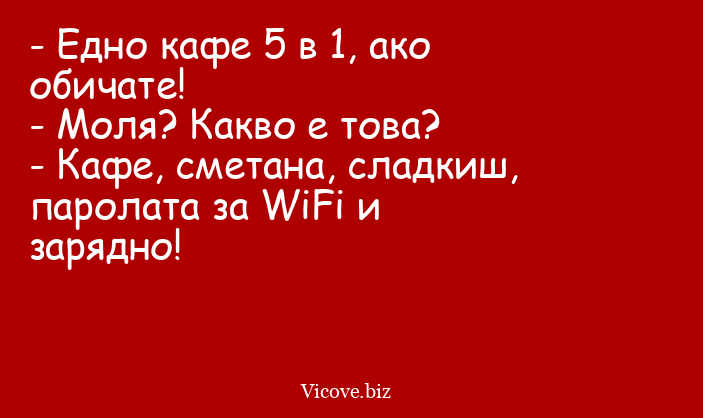 - Кафе, сметана, сладкиш, паролата за WiFi и зарядно!