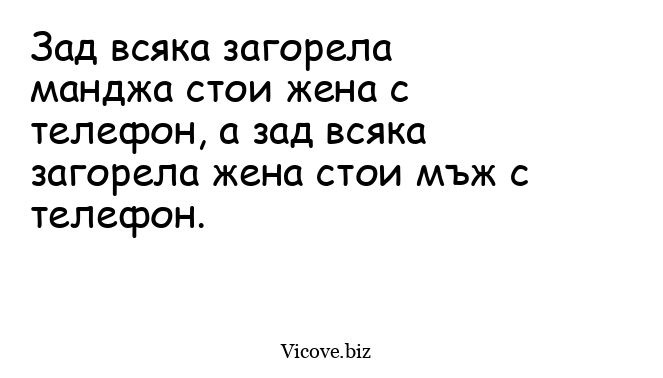 Зад всяка загорела манджа стои жена с телефон, а зад всяка загорела жена стои мъж с телефон.
