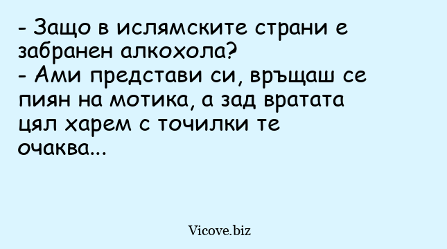 - Ами представи си, връщаш се пиян на мотика, а зад вратата цял харем с точилки те очаква...