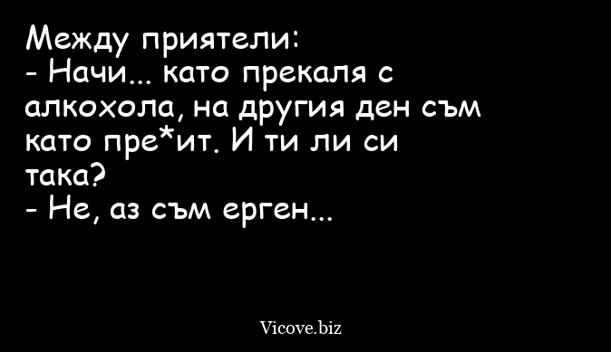 - Начи... като прекаля с алкохола, на другия ден съм като пре*ит. И ти ли си така?