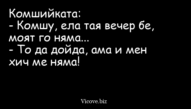 Комшийката: - Комшу, ела тая вечер...