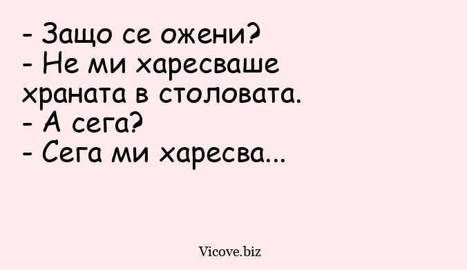 - Защото жена ми ми изневерява с продавача от млекарския магазин и на мен ми омръзна да ям само мляко, сирене и кашкавал!