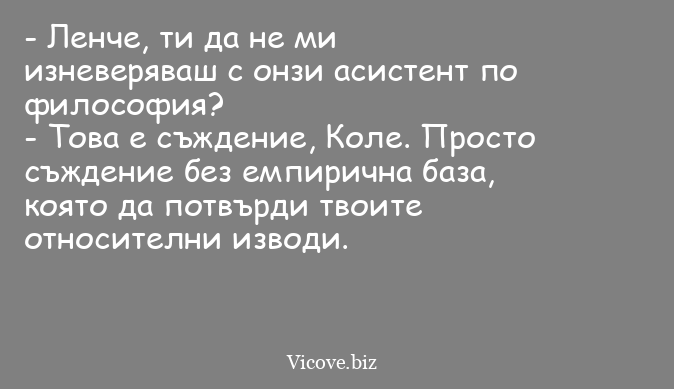 - Ленче, ти да не ми изневеряваш с онзи асистент по философия?