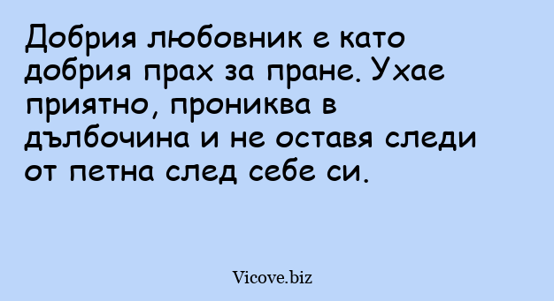 Добрия любовник е като добрия прах за пране. Ухае приятно, прониква в дълбочина и не оставя следи от петна след себе си.