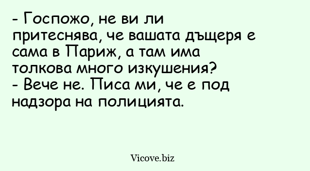 - Госпожо, не ви ли притеснява, че вашата дъщеря е сама в Париж, а там има толкова много изкушения?