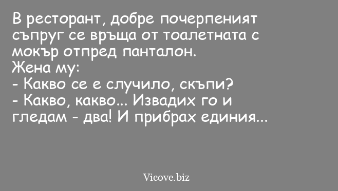 - Какво, какво... Извадих го и гледам - два! И прибрах единия...