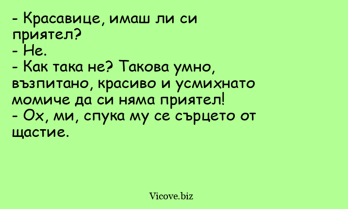 - Как така не? Такова умно, възпитано, красиво и усмихнато момиче да си няма приятел!