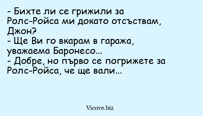 - Бихте ли се грижили за Ролс-Ройса ми докато отсъствам, Джон?