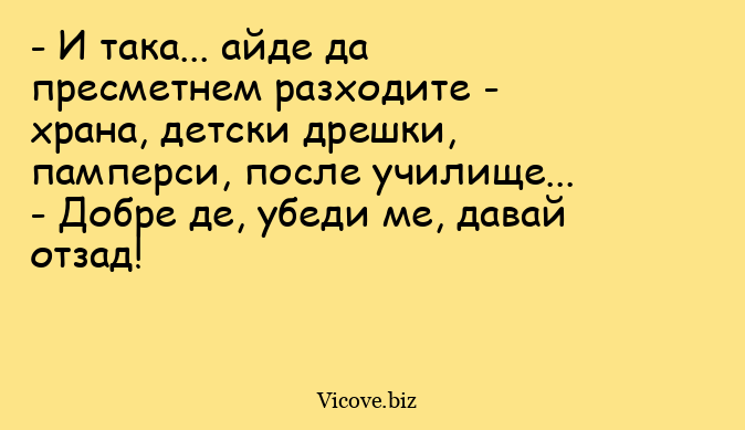 - И така... айде да пресметнем разходите - храна, детски дрешки, памперси, после училище...