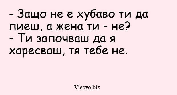- Защо не е хубаво ти да пиеш, а жена ти - не?