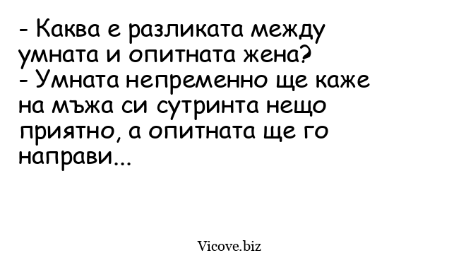 - Умната непременно ще каже на мъжа си сутринта нещо приятно, а опитната ще го направи...