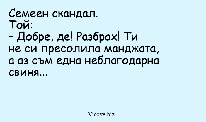 – Добре, де! Разбрах! Ти не си пресолила манджата, а аз съм една неблагодарна свиня...