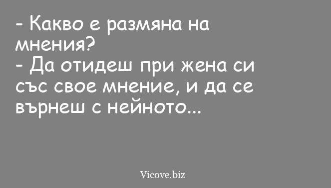 - Да отидеш при жена си със свое мнение, и да се върнеш с нейното...