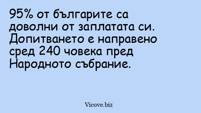 95% от българите са доволни от заплатата си. Допитването е направено сред 240 човека пред Народното събрание.