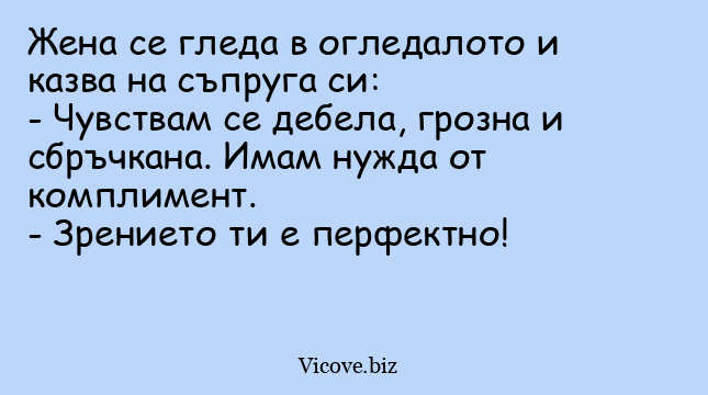 - Чувствам се дебела, грозна и сбръчкана. Имам нужда от комплимент.