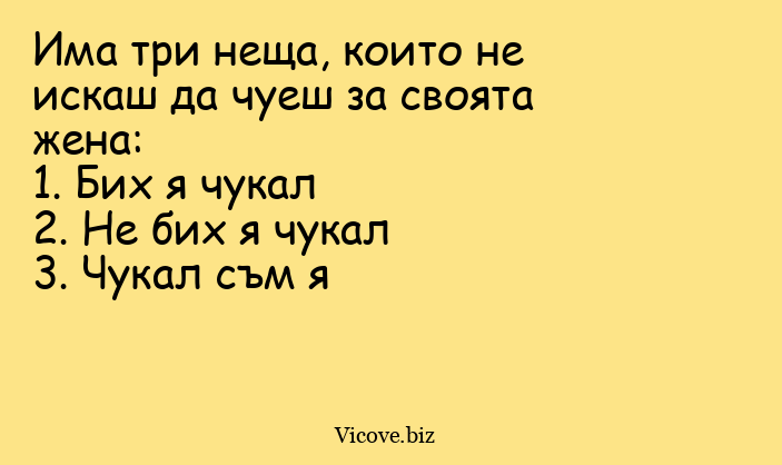 Жената е такова създание, което не пърди, не се оригва, не плюе. Затова е принудена да освобождава натрупаното в нея напрежение с тормоз над мъжете...