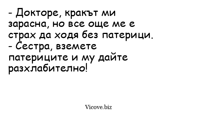 - Докторе, кракът ми зарасна, но все още ме е страх да ходя без патерици.