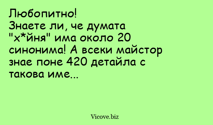 Знаете ли, че думата "х*йня" има около 20 синонима! А всеки майстор знае поне 420 детайла с такова име...