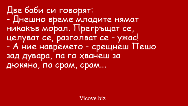 Две баби си говорят: - Днешно време...