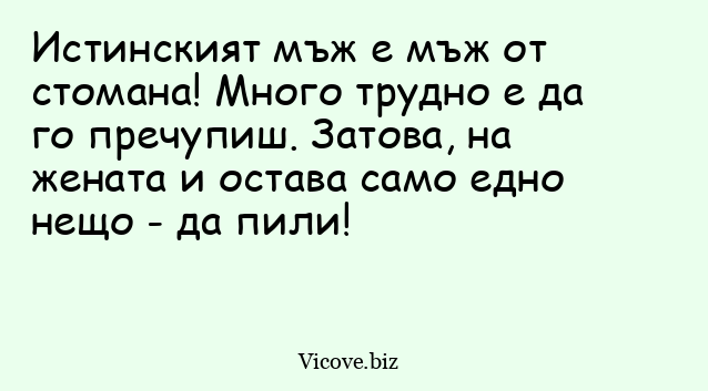 Истинският мъж е мъж от стомана! Много трудно е да го пречупиш. Затова, на жената и остава само едно нещо - да пили!