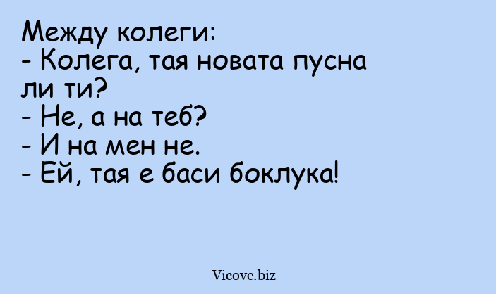 Между колеги: - Колега, тая новата...