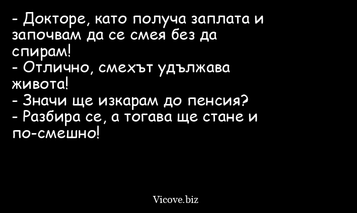 - Докторе, като получа заплата и започвам да се смея без да спирам!