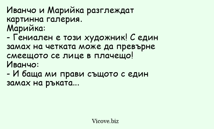 - Иванчо, смени си чаршафите, да не вземе момичето да забременее!